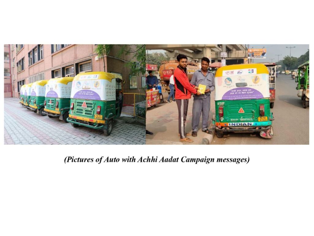 Dissemination of Key messages of Achhi Aadat Campaign through Public Transport (Autorickshaws) in New Delhi